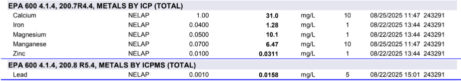 “I was not familiar with manganese until this test,” she said. “And I had read in the water victims group this was a huge issue. And when I combined both the complaints and his results, well I have to wonder. The tests were ordered through our doctor, Laura Burton, and we have an apt on Sept. 8 to decipher his results. I did ask her about the manganese and she told me to ensure he’s not ingesting the water, shower filter etc.”